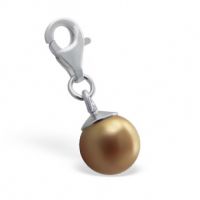 Silver Created South Sea Gold Pearl Charm With Crab Lock |