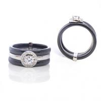 Sterling Silver Halo Diamond CZ Ring with Black Ceramic |
